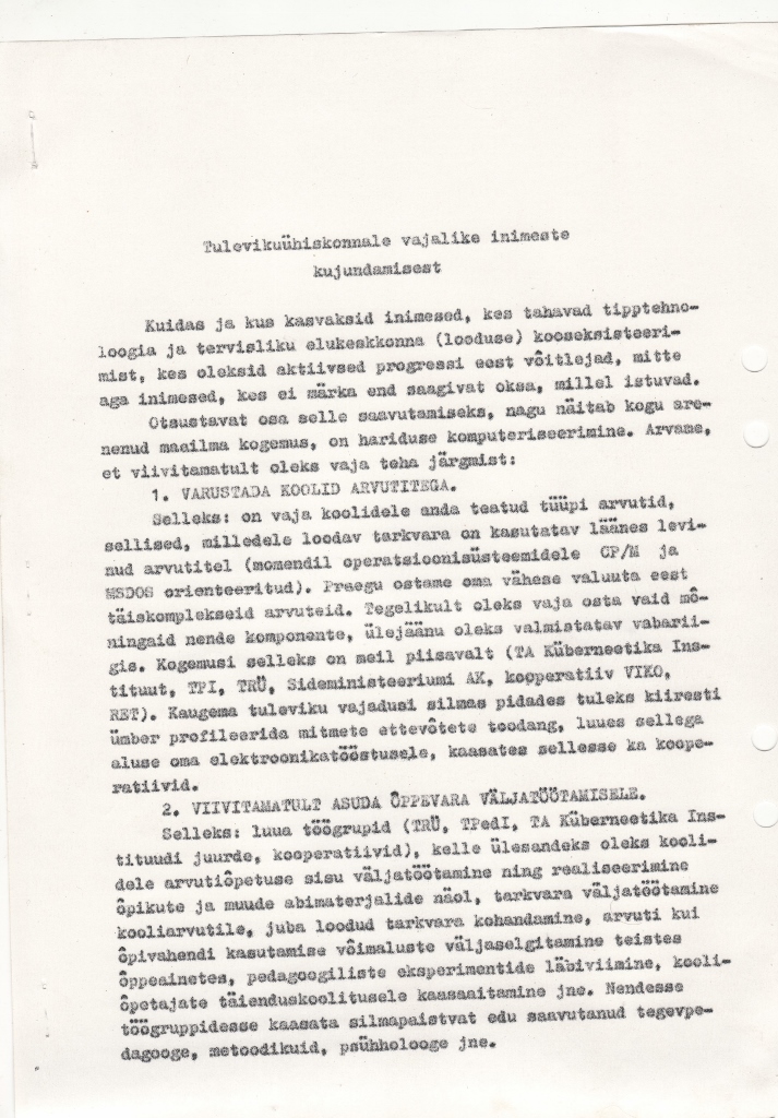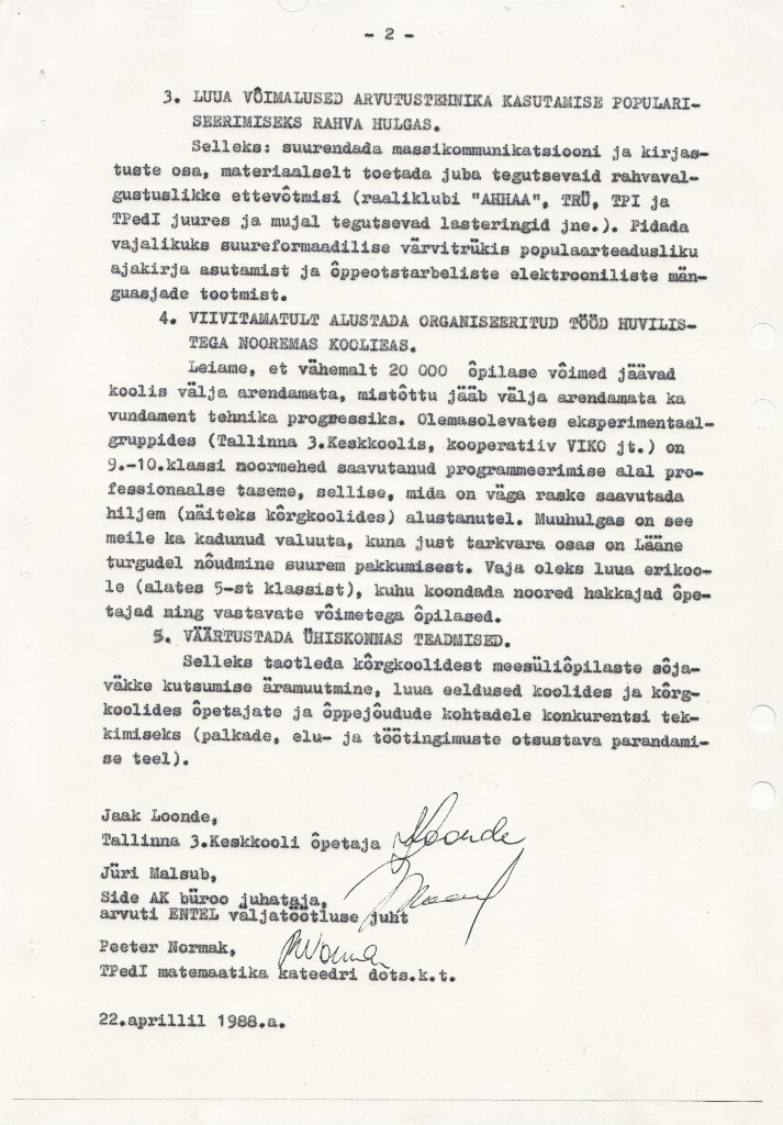 Koos kirjutasime 3 mehe kirja 1988 aastal sellest (pildid, või loe siit lingilt), kuidas andekaid noori peaks arvutiharidusega õnnistama: